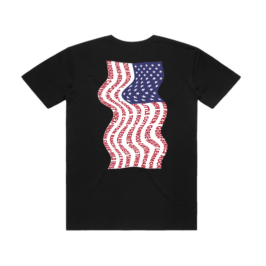 One of my very favorite designs. All the famous US climbing locations layered onto the strips of the US Flag. This is a great conversation piece as well as a bucket list. Â